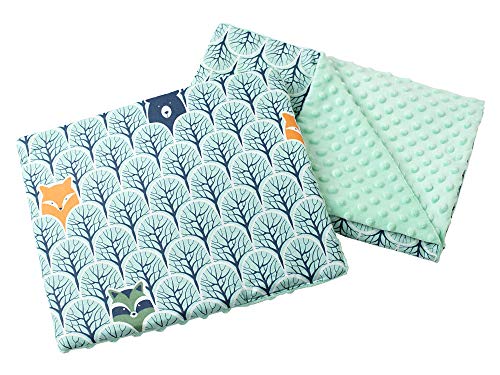 Medi Partners Babyfilt krypfilt med kudde 100% bomull minky barnfilt stor dubbelsidig 75 x 100 + 35 x 30 cm multifunktionell för säng barnvagn (skog med minzer minky)