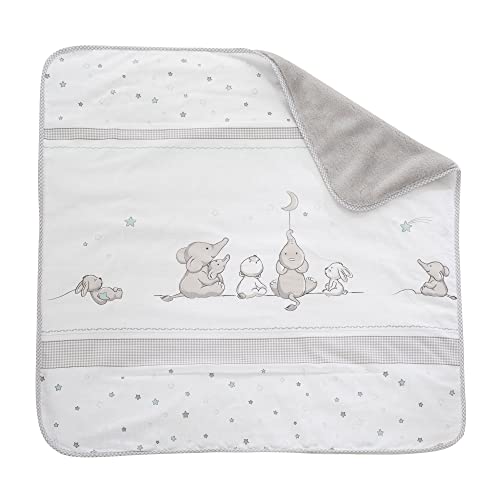 roba Babyfilt Stjärnstråle - 80 x 80 cm - Baby Mysfilt med Stjärnor & Elefantmotiv - Barnfilt av mjuk bomull - Vit/Ljusgrå