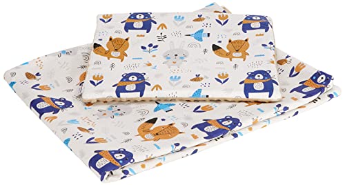 Medi Partners Babyfilt krypfilt med kudde 100% bomull minky barnfilt 55 x 75 + 35 x 30 cm multifunktionell för barnvagn, babystol, vagga (björn i skogen med minzer minky)