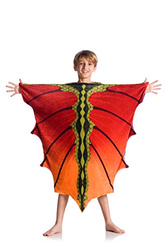Kanguru la coperta con le maniche Dragon barnfilt, bärbar, mjuk fleece, täckt fram- och baksidan, gör att du kan använda armarna, 90 x 100 cm, drake