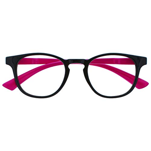 OPULIZE Bop Blue Light Blocking barnglasögon utan styrka rund ram fjädergångjärn skyddar ögon förbättrar sömn minskar huvudvärk dator gaming pojkar flickor B47, Svart neonrosa, +0,00 Dioptrien
