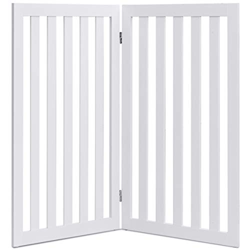 COSTWAY Avspärrgaller hundar 89 cm högt, skyddsgaller trä, barngrind, trappgrind, flexibelt dörrskydd (vit-2 paneler)