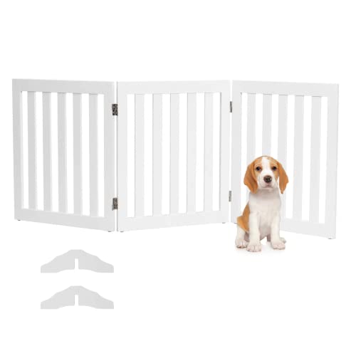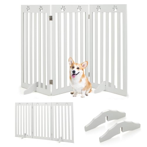 COSTWAY Avspärrgaller hundar, 89 cm högt, skyddsgaller trä, barngrind, fällbart trappgrind, hundavspärrningsgaller flexibelt dörrskydd (3 paneler, vit)