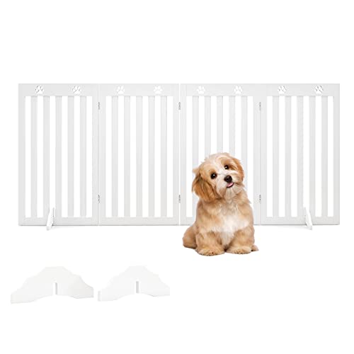 COSTWAY Avspärrgaller hundar 89 cm högt, skyddsgaller trä, barngrind, fällbart trappgrind, hundavspärrningsgaller flexibelt dörrskydd (4 paneler, vit)