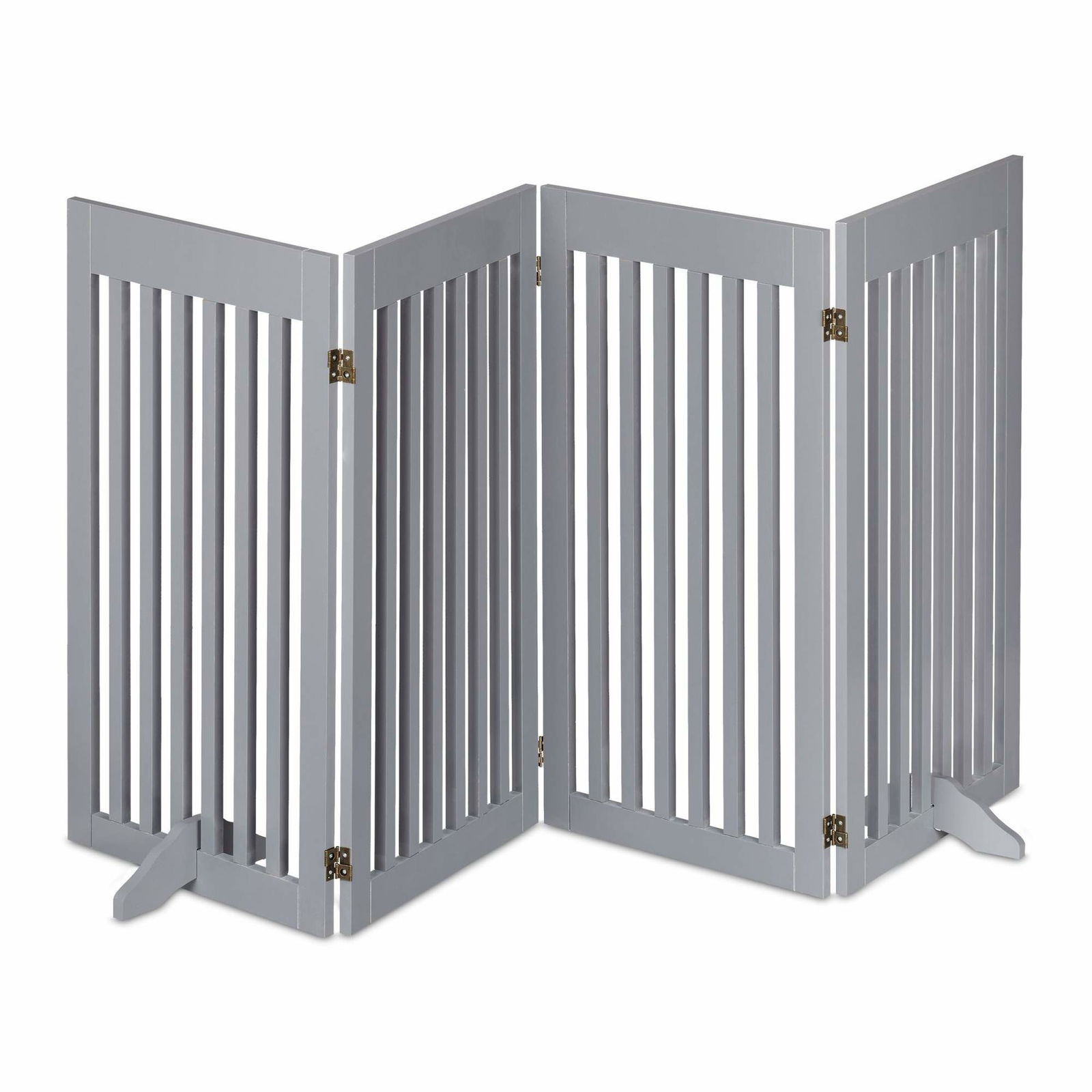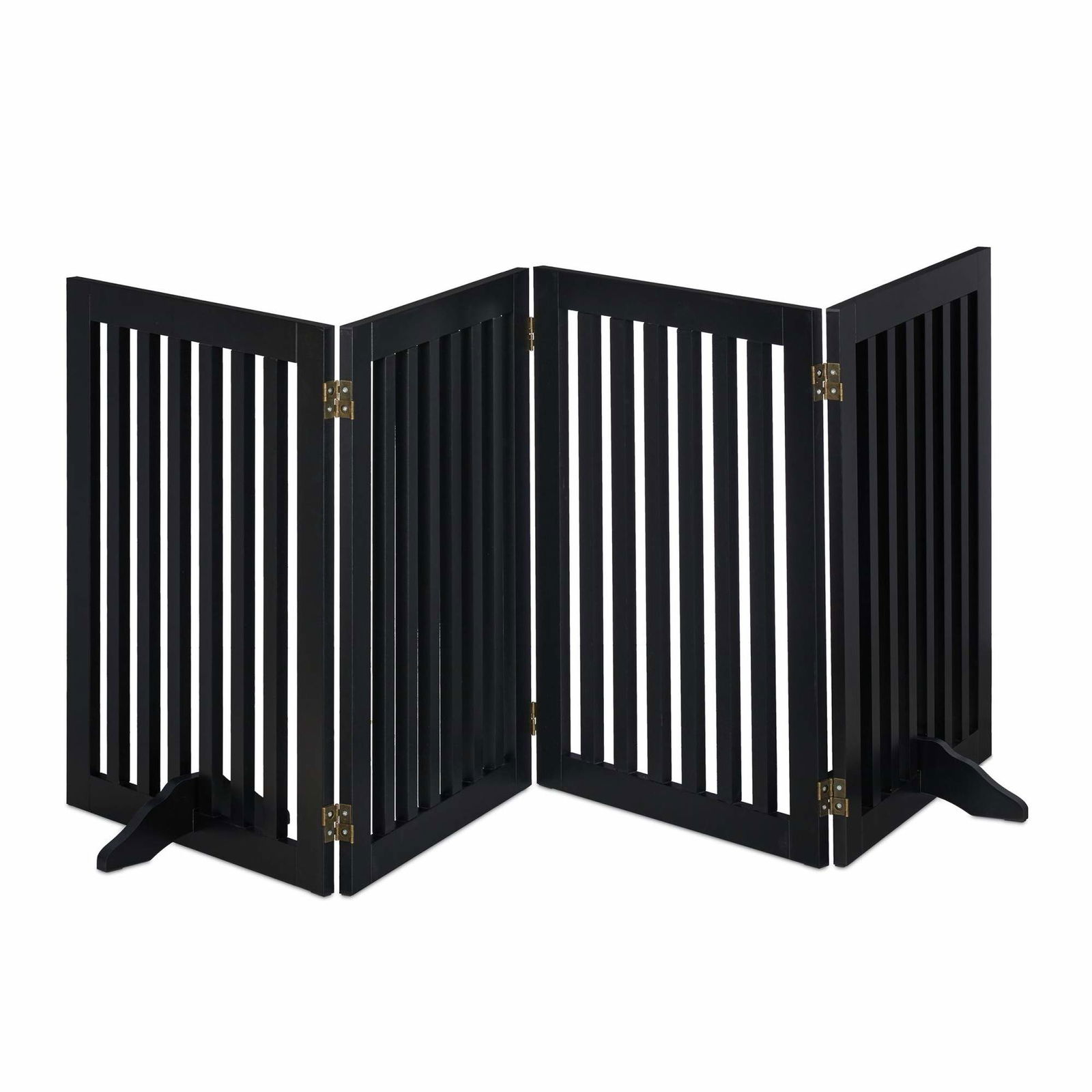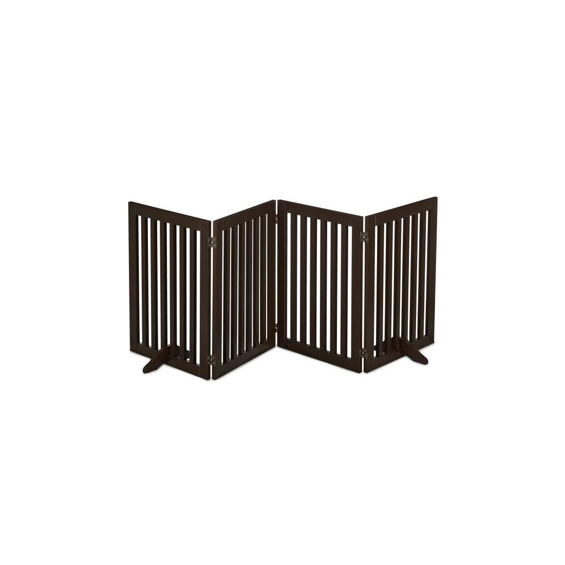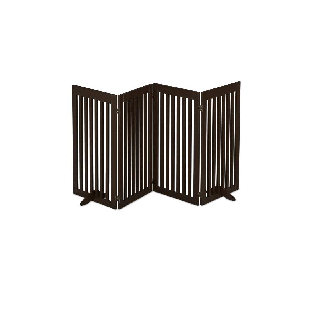 COSTWAY Avstängningsgaller hundar, skyddsgaller trä, barngrind, trappgrind 60 cm hög, hundavspärrningsgaller flexibelt dörrskydd (4 paneler, brun)