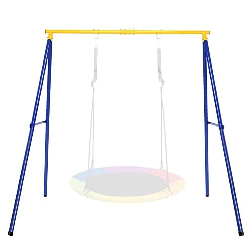 KOMFOTTEU Dubbelgunga med gungställ, barngunga utomhus med metallram för barn, gunga som kan belastas upp till 300 kg, trädgårdsgunga för trädgård, trädgård, trädgård, trädgård, park, blå + gul