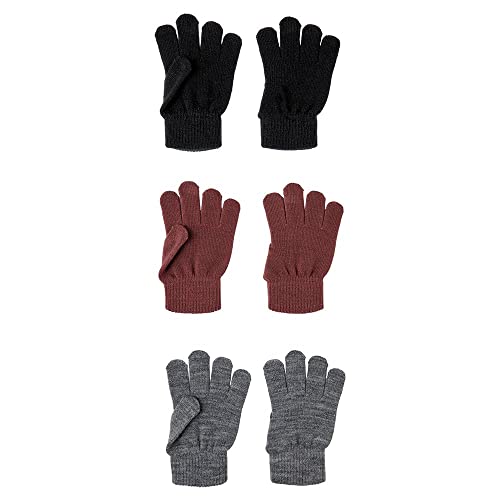 NAME IT Unisex barnhandskar (3-pack), Noctur/pack:3-pack med grå mel/svart, 5