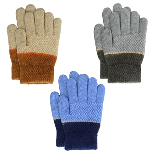 TAGVO Varma barnhandskar, vindtäta termiska stickade handskar, tjocka vinterhandskar för pojkar flickor, 3 par utomhushandskar (ålder 3–5 år) vardagskläder vinter, Flerfärgad, M