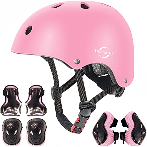 UniqueFit Barnhjälm pojkar och flickor säkerhet justerbar bekväm hjälm för rulle, skoter, skateboard, cykel (3-8 år) (rosa nyckelpiga)