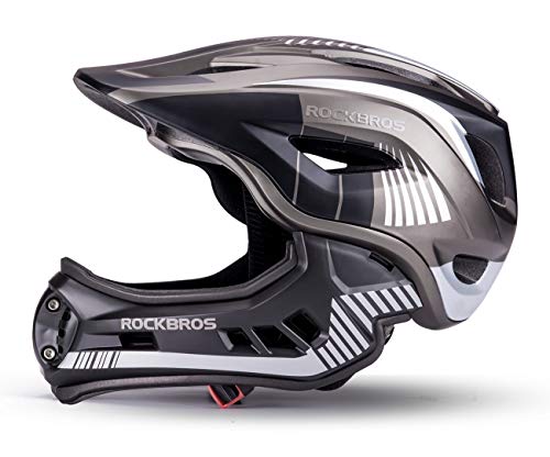 ROCKBROS Cykelhjälm Helhjälm Barn Ungdom för BMX/MTB/Downhill Crosshjälm Integrerad Hjälm Barnhjälm med Avtagbart Hakskydd Justerbart 48-54CM Titan