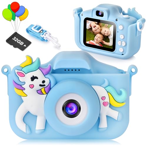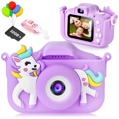 Barnkamera,digitalkamera barn med 2,0-tums stor skärm 1080P HD,Barn digital kamera leksak med 32 GB SD-kort,Selfie barnkamera,Enhörning barnkamera som leksaksgåvor för 3 till 12 år pojkar och flickor