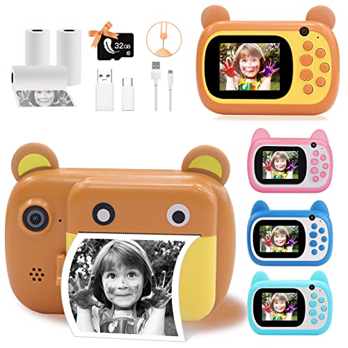 Ainiv direktutskriftskameror för barn, 2,4 tum digitalkamera för barn med dubbelkamera, 1080P barnkamera med 3 rullar tryckpapper, 32 GB SD-kort, 5 färgpennor, gåvor för 3-12 år gamla pojkar flickor,