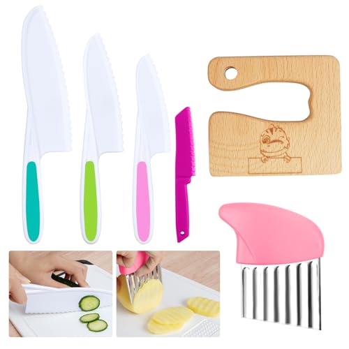 Barnkniv 5-delat köksset för barn för att skära och laga frukt eller grönsaker, inklusive skalare säkerhetskniv från 2 år, presentset för barn