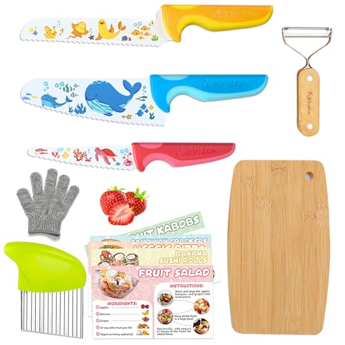 11 stycken barnkniv, Montessori barnkniv med Y skalare vågig skärbräda, lämplig för skärning av frukt, grönsaker och bröd