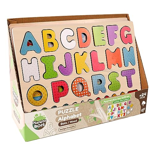 Träplanet - alfabetspussel - FSC - pedagogiskt spel - första reflektioner - 052462A - 26 bitar - flerfärgad - trä - barnlek - barnpussel - 30 cm x 22,5 cm - från 2 år
