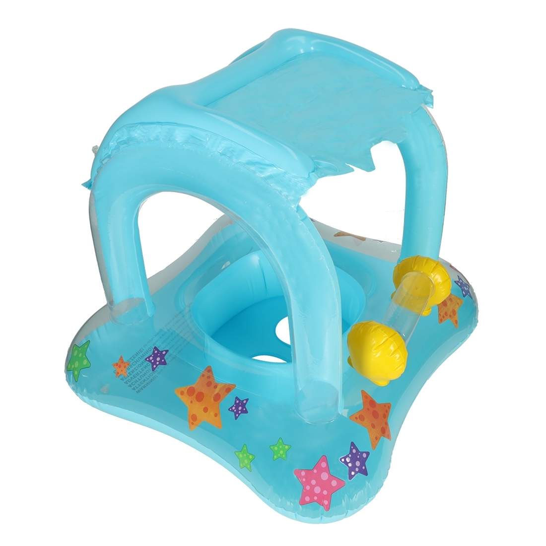 Blå uppblåsbar barnmadrass med dinosauriemotiv