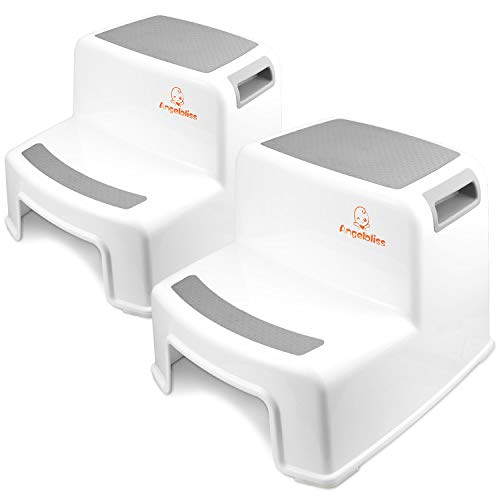 Angelbliss Dubbel höjd 2 stegspall för barn, mångsidig barnpall med halkfria mjuka grepp och säkra halkfria dynor, potträningspall för badrum, kök (grå 2-pack) (grå-2)