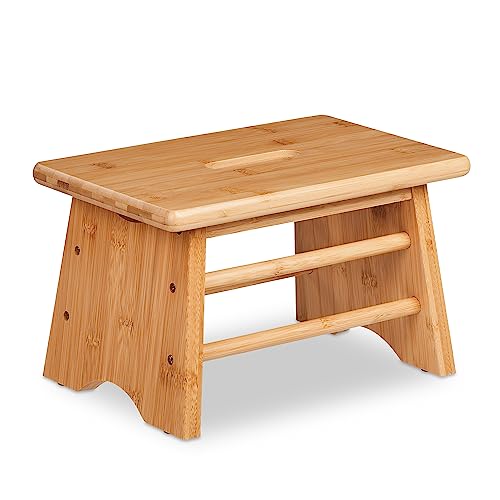 Relaxdays Fotbänk, bambu, upp till 100 kg, stabil stegpall, barnpall badrum, pall, H x B x D: 20 x 33 x 21,5 cm, natur, 1 styck