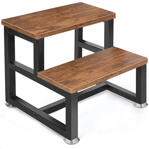 Stegpall för barn, 2 steg, tung metallram och stabil fotpall av trä, förtjockad underbalk fixerad upp till 300 pund, barnpall för kök, säng badrum barnrum