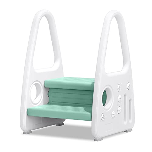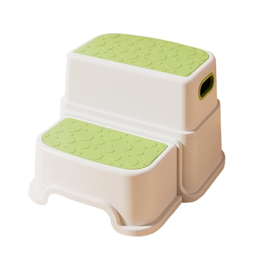 LZQ Stegpall för barn, stegpall för 2 nivåer, lärotorn, pyramidstegpall för 2–5 år, barnpall med två armstöd, halkskydd, stående plast för badrum, kök, grön