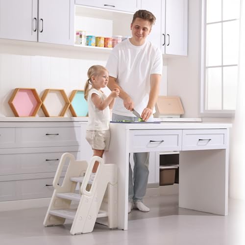 Halkfri Stegpall - Anti-Tippning Barnpall, Vikbar för Badrum, Småbarnspall, Trappall med Vask