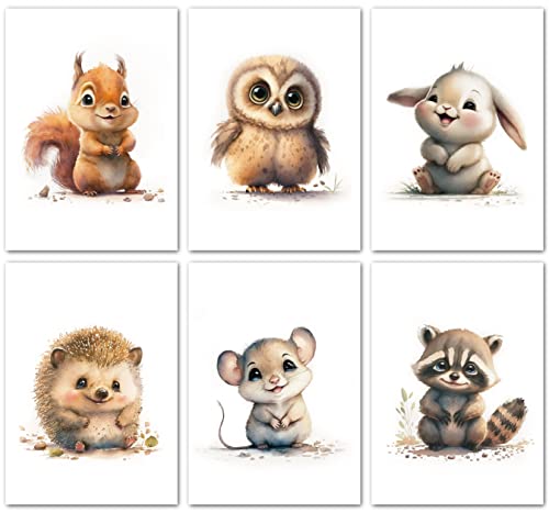 LAVEMA Bilder av glada skogsdjur för barnrum, A4-affisch utan bildram, väggbilder för pojke, flicka, djurbilder för barnrum, dekoration för babyrum, väggaffisch