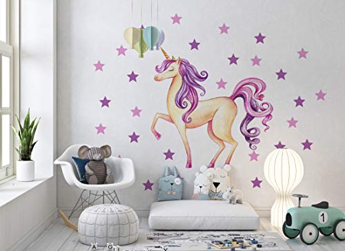 Väggklistermärke enhörning pastellfärger rosa väggmålning I stjärnor barnbilder pojke barnrum flicka klistermärke Osomhome os2009 (190 x 150 cm)