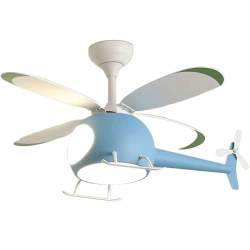 FUfIzU Helikopter takfläkt med lampor för barnrum, 38,6" LED ljuskrona+fläkt Pojke & flicka Flygplan takfläkt ljus Helikopter takfläkt dekorativ taklampa,Blue