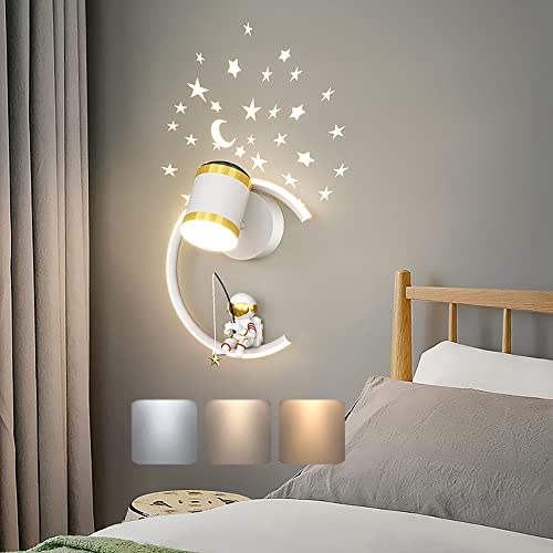 Vägglampa med LED-spotlight, 12 W, dimbar, modern sänglampa, inomhus, rymd, astronaut, väggljus, barnrum, säng, sovrum, pojke, flicka, vardagsrum, nattlampa (B)