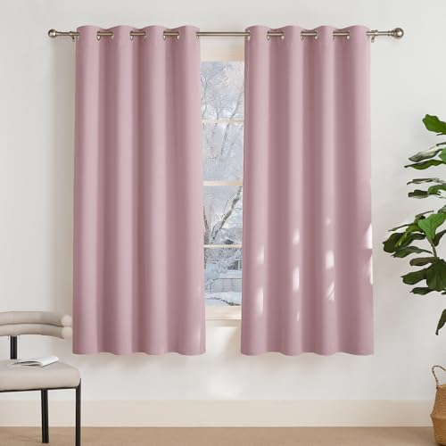 MRTREES 2 stycken rosa korta gardiner för barnrum, flicka, 100 % mörkläggning, ljusblockerande, termiska och värmeisolerande, med genomföringar, för fönster, 140 x 160 cm