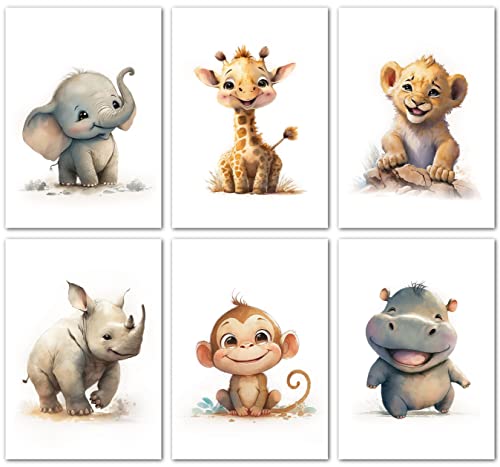 LAVEMA Bilder av glada djur från afrikanskt safari för barnrum, A4-affisch utan bildram, väggbilder för pojke, flicka, djurbilder för barnrum, dekoration för babyrum, väggaffisch