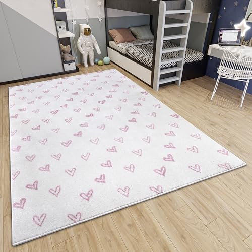 Hanse Home Adventures Barnmatta – modernt hjärtmönster matta pojke flicka för barnrum, lekrum, ungdomsrum, vardagsrum – gräddrosa, 160 x 235 cm