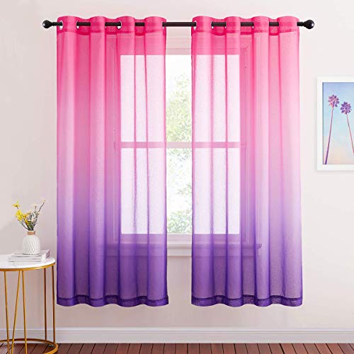 NICETOWN färggradient, gardiner barnrum, flicka, 2 stycken, H 175 x B 140 cm, fönstergardiner, linneutseende, halvtransparent, öljettgardin, barnrum, dekorativa skynken, voile-gardiner, rosa + lila