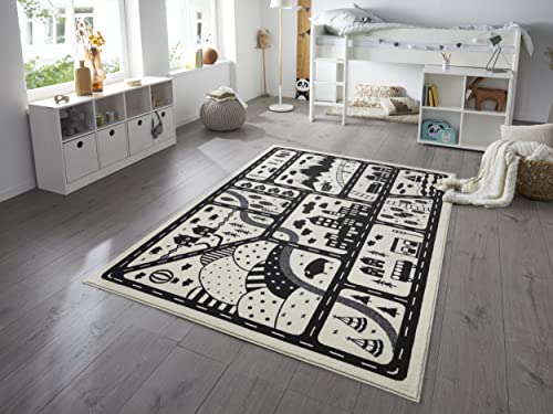 Hanse Home Matta barnrum barnmatta landscapes – pojke flicka lekmatta kort lugg matta modern lekgata vägmotiv, mjuk lugg, lättskött – kräm, 120 x 170