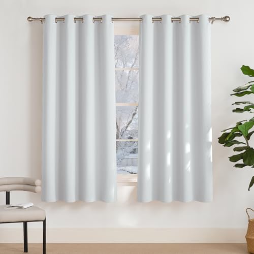 Deconovo Set med 2 gardiner vardagsrum balkong modern design mörkläggning termisk anti-kyla rynkelgardin flickrum barnrum dörrkontor 140 x 200 cm ljusgrå
