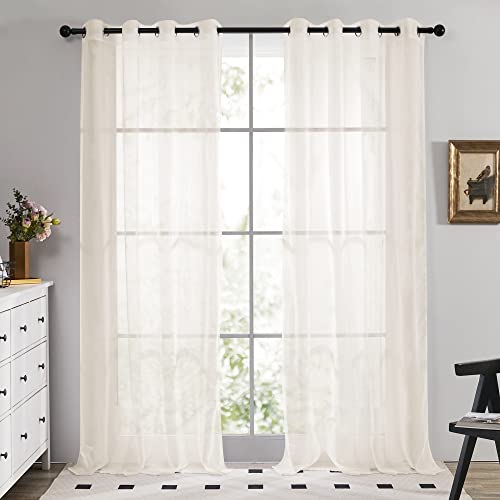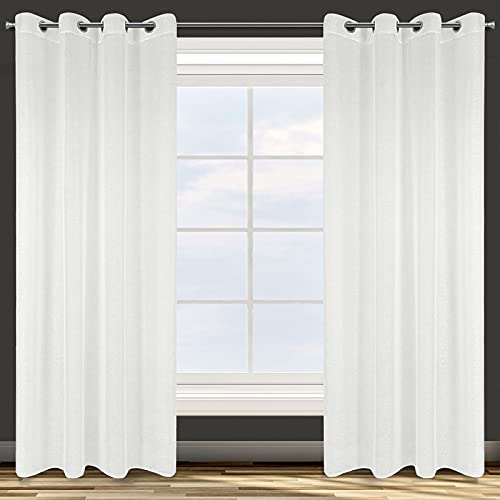 MRTREES Gardiner vit linneutseende halvtransparenta för vardagsrum sovrum barnrum, gardiner vit 220 cm lång, gardin med öljetter 140 cm brett, öljettskynke set om 2