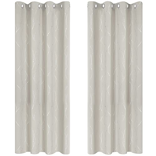 Deconovo Opaka gardiner, mörkläggningsgardiner för sovrum, moderna gardiner för barnrum, 175x140 cm (höjd x bredd), grädde, uppsättning med 2