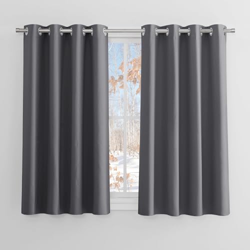 PONY DANCE totalt mörkläggande gardiner för barnrum - termiska gardiner med öljetter, moderna, korta, skräddarsydda gardiner för kök, 2 st, 140 x 160 cm, grå