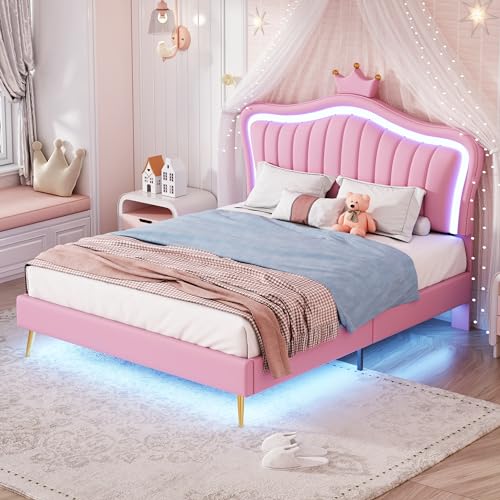 vidaXL Sängram Med Led Grå Konstläder Oval 140X200 Cm Barnsängar