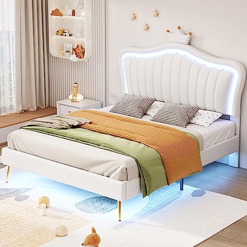 vidaXL Sängram Med Led Vit Konstläder Oval 140X200 Cm Barnsängar