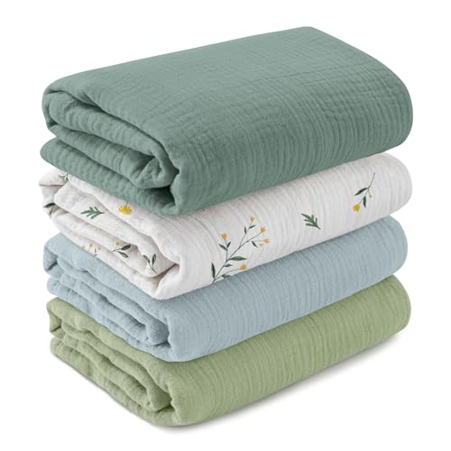 GLLQUEN BABY skötdukar nyfödda 4 stycken, muslinbomull barnfilt, 95 x 100 cm gosig filt för barn, småbarn, barnsäng, barnvagn, pojke eller flicka, babyfilt, present till födseln