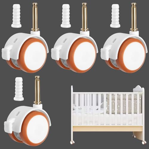 Svängbara hjul för barnmöbler, 4 stycken rullsats, gummil barnsäng, hjul med broms barnsängar, barnsängshjul lämpliga för barnvagnar, barnsängar, möbler (vit)