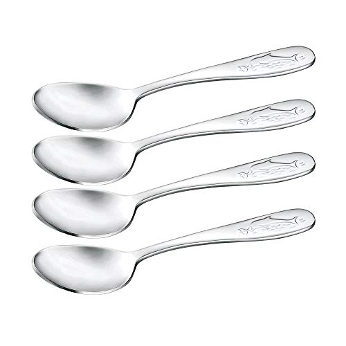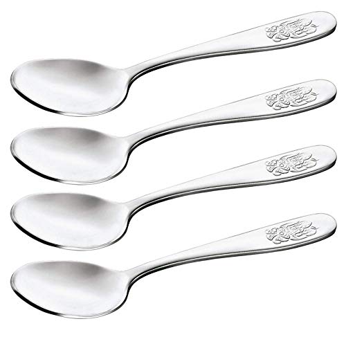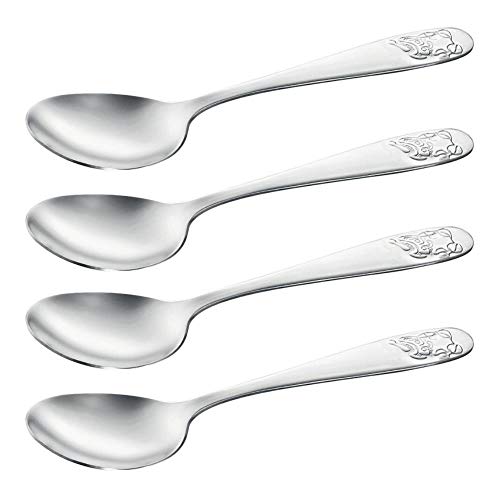 Viva Haushaltswaren – 4 x barnskedar med präglat motiv (björn) skedar för barn i en uppsättning av kromstål/matbestick/barnsele individuellt som barnbestick-set