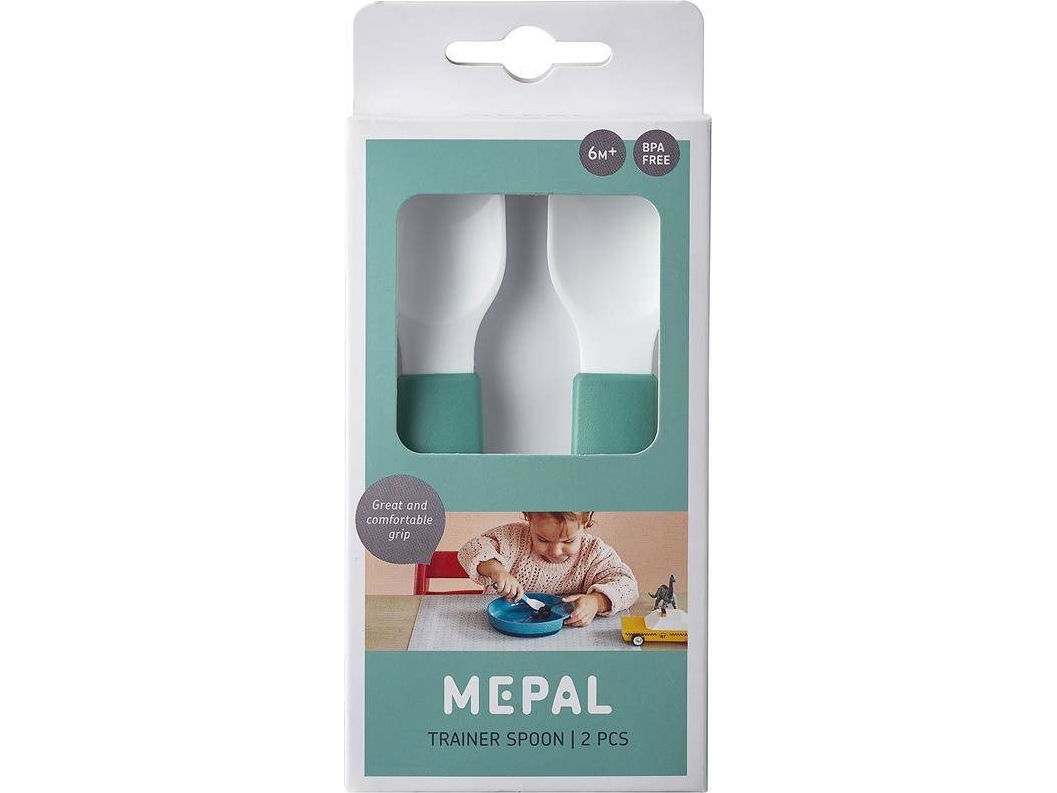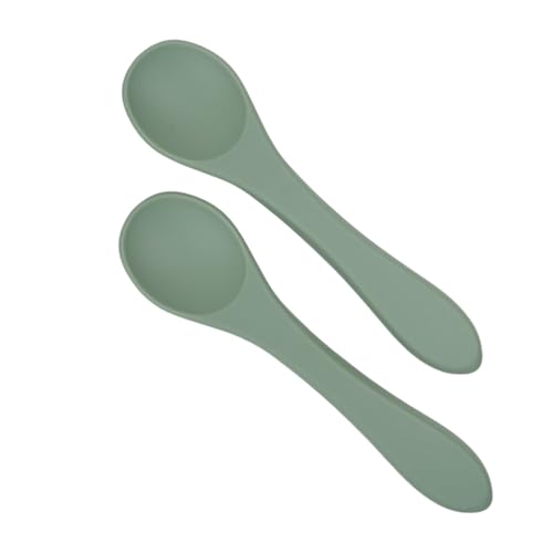 THERMOBABY - Set med 2 silikonskedar för spädbarn - baby/barnskedar 1:a åldern - från 4 månader, mjuk - rundad tå - lång och ergonomisk ärm - salviagrön