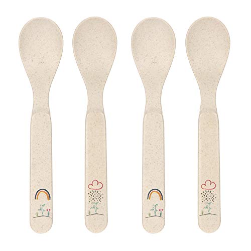 LÄSSIG Barnskedar set (4 delar) melamin BPA diskmaskin och mikrovågsugn sked set trädgårdsutforskare, flerfärgad