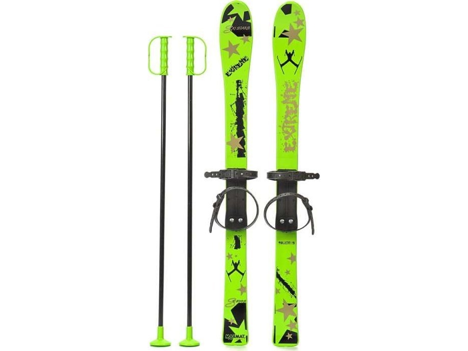 Marmat Barnskidor Med Stavar 90 Cm Grön