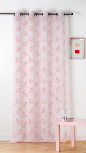LINDER Slöja med enhörningsmönster - vävd och färgad i Frankrike - barnslig enhörningsstil - godisrosa färg - gevärskanon öljetter - 150 x 240 cm - 100% polyester - enhörningskollektion