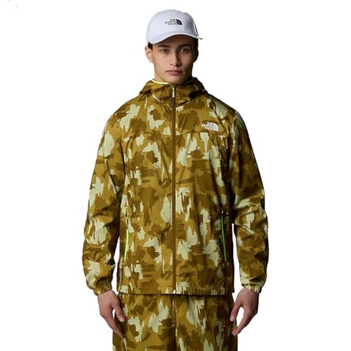 THE NORTH FACE män berg huva vind tryck mjuk skaljacka, bärnsten grön aop tryck, S