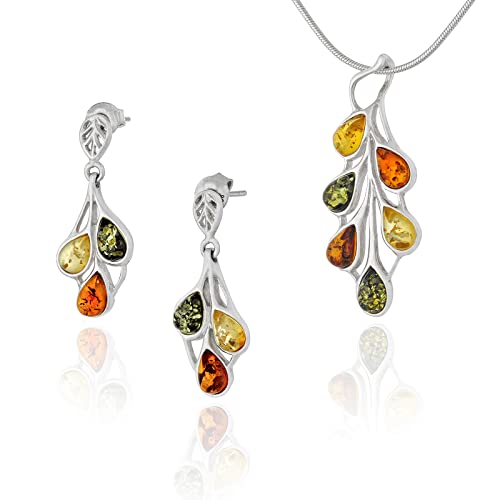 AMBEDORA Litet damsmyckesset Amber 458, hänge med kedja och örhängen, färgglad baltisk bärnsten, sterlingsilver 925, presentidé, Sterlingsilver, Bärnsten