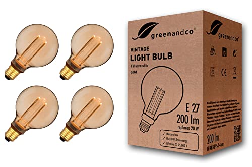 4x greenandco® LED vintage retro glödtråd glödlampa bärnsten Edison stil E27 G95 4W 200lm 1800K (extra varm vit) 320° 230V glaslampa, ingen flicker, ej dimbar
